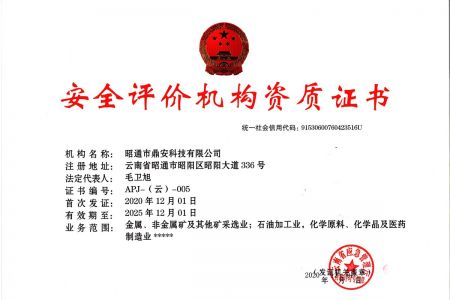 2003年11月10日,昭通市鼎安科技有限公司成立,初始主要從事第三方安全工程技術(shù)服務(wù),經(jīng)多年運營,發(fā)展為多專業(yè)綜合科技平臺,為社會提供多種專業(yè)技術(shù)服務(wù)工作。 現(xiàn)公司注冊資金為1200萬元,公司法定代表人:毛衛(wèi)旭。公司主要業(yè)務(wù):安全評價、安全標(biāo)準(zhǔn)化評審、安全工程技術(shù)服務(wù);環(huán)境監(jiān)測、職業(yè)衛(wèi)生檢測、檢驗;法律訴訟及非訴訟服務(wù);司法鑒定、固定資產(chǎn)投資項目節(jié)能服務(wù);工程咨詢;工程測量測繪;安全教育培訓(xùn)等。是安全生產(chǎn)服務(wù)、安全教育培訓(xùn)機構(gòu),也是環(huán)境監(jiān)測和職業(yè)衛(wèi)生服務(wù)機構(gòu),同時也是綜合的檢測檢驗、綜合科技平臺服務(wù)機構(gòu)。多年來為公、檢、法、司、軍、警、海關(guān)、仲裁、安監(jiān)、工礦商貿(mào)企業(yè)、社會團(tuán)體及個人提供多專業(yè)技術(shù)服務(wù)。
